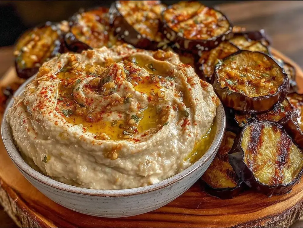 A smooth and velvety roasted eggplant dip with tahini, garlic, and lemon juice, perfect for entertaining or a healthy snack.