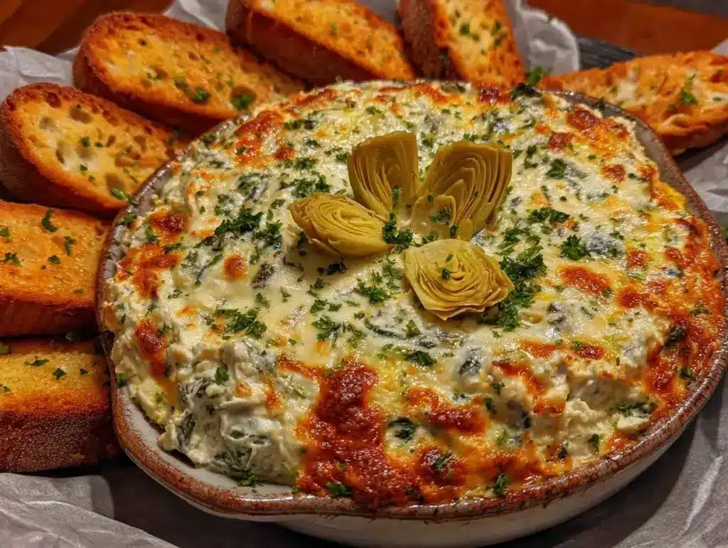 Keywords: spinach artichoke dip, party appetizer, creamy dip, gluten-free, easy recipe, cheese dip, holiday snack, game day, vegetarian, comfort food
