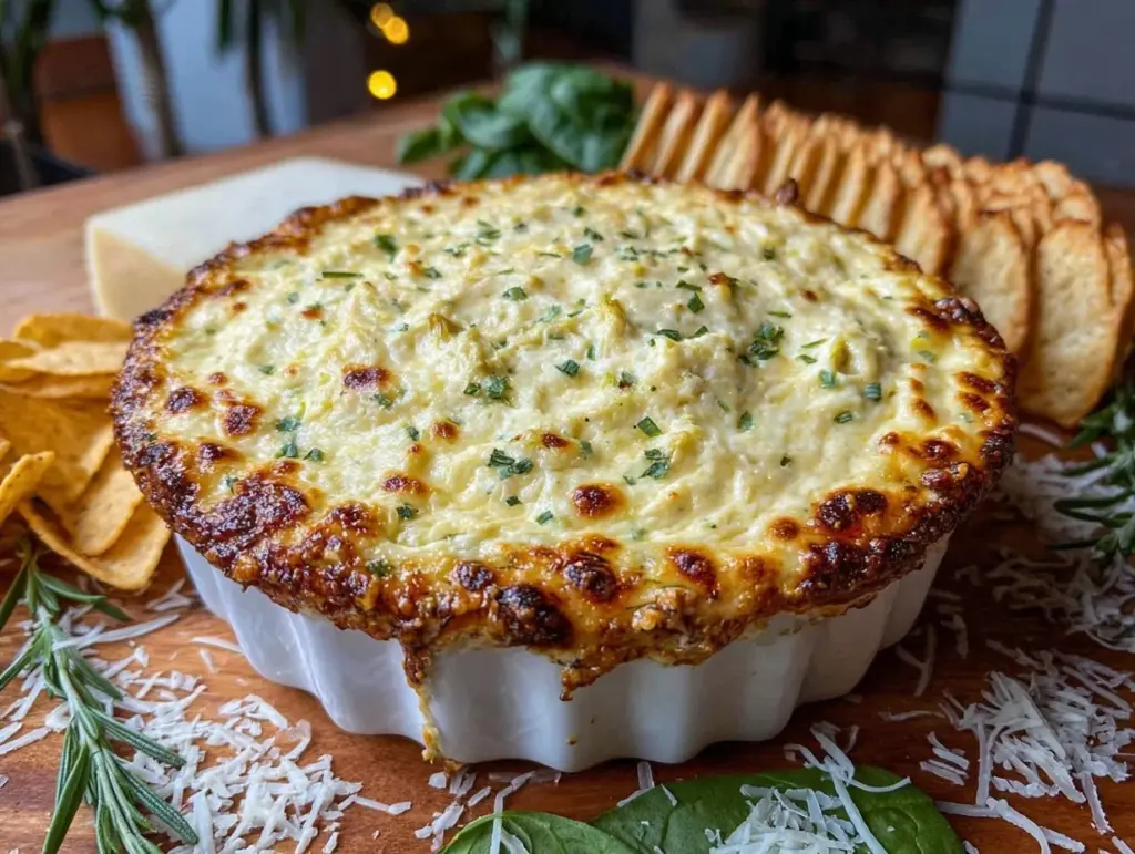 Creamy Spinach Artichoke Dip Recipe with Crispy Parmesan Crust Easy and Perfect for Parties