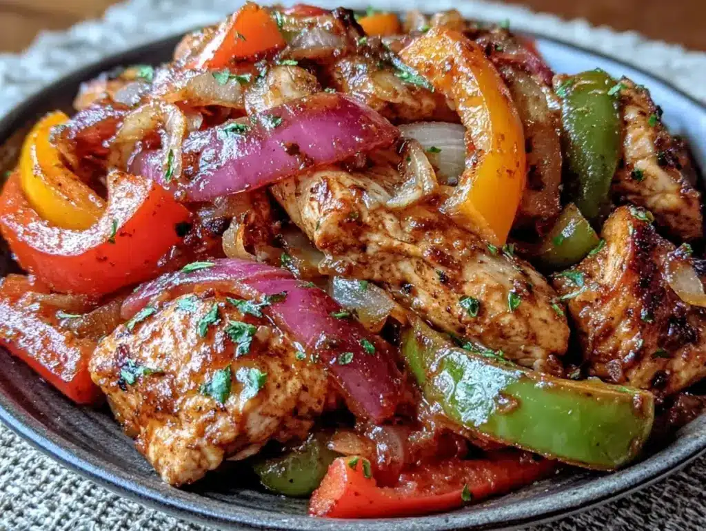 The peppers softened just right, the onions caramelized gently, and the chicken was tender enough to shred with a fork. Sitting down to eat, I realized this recipe wasn’t just a time-saver; it was exactly the kind of comfort food that feels homemade but without the fuss. Since then, it’s been my go-to when life gets hectic but I still want something flavorful and satisfying on the table.