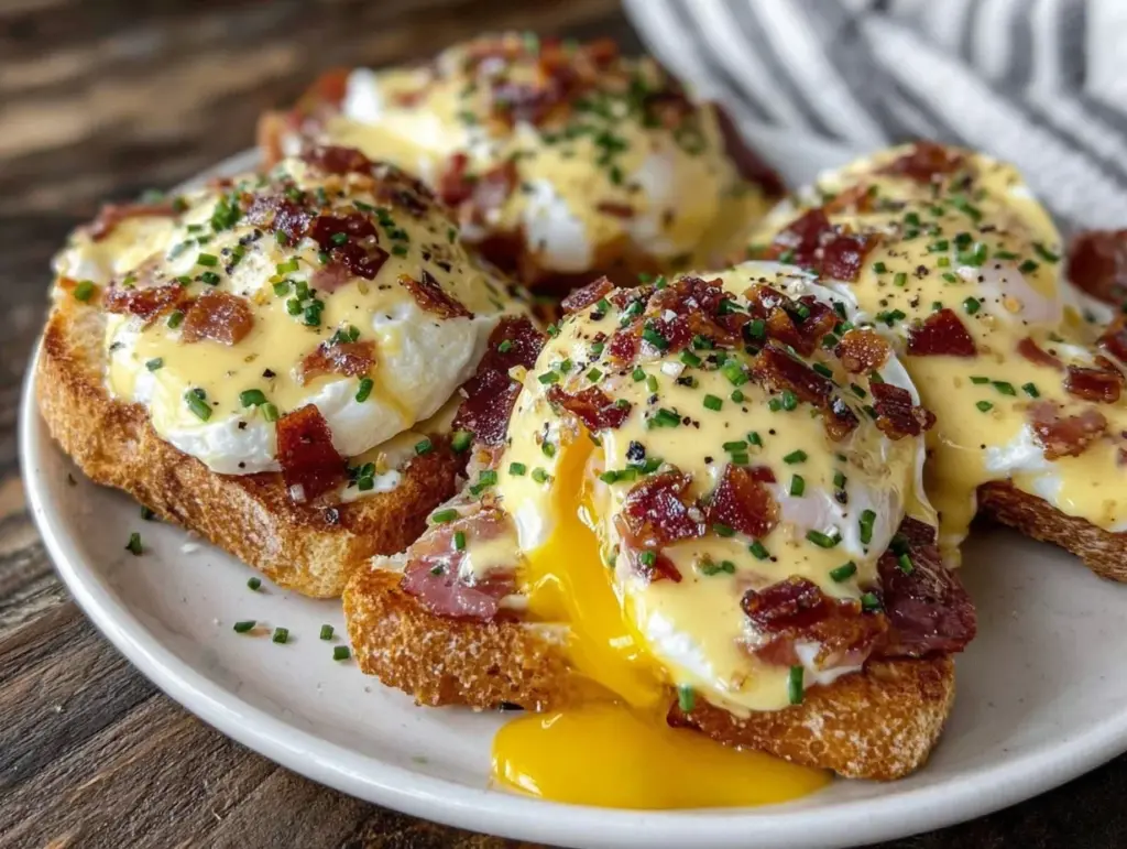 - Serving: Serve hot, right after assembly, for the creamiest sauce and tastiest textures. I love piling the Benedicts on a big platter, garnishing with extra chives and a sprinkle of paprika for color. Pair with a side of crispy hash browns, a fresh fruit salad, or even a simple arugula salad with lemon vinaigrette.