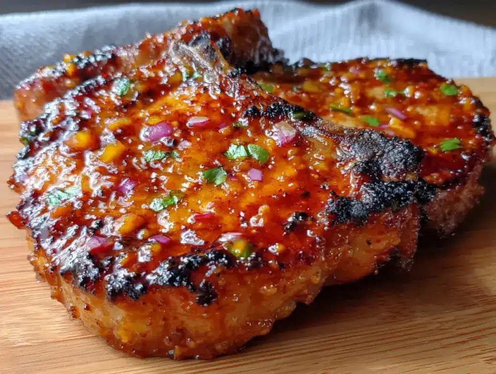 A smoky, sticky, sweet-heat glazed pork chop paired with a fresh, zingy peach salsa that balances richness perfectly. Quick and easy, ideal for summer gatherings and weeknight dinners.