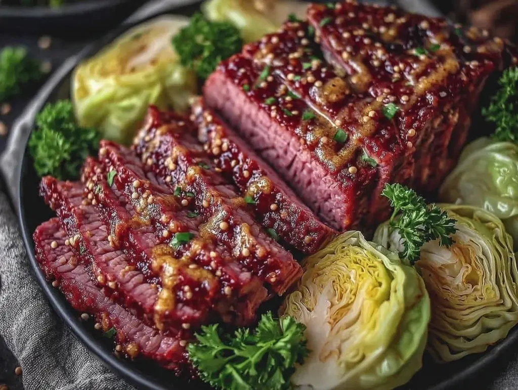 Tender Slow Cooker Corned Beef and Cabbage Recipe with Easy Mustard Glaze