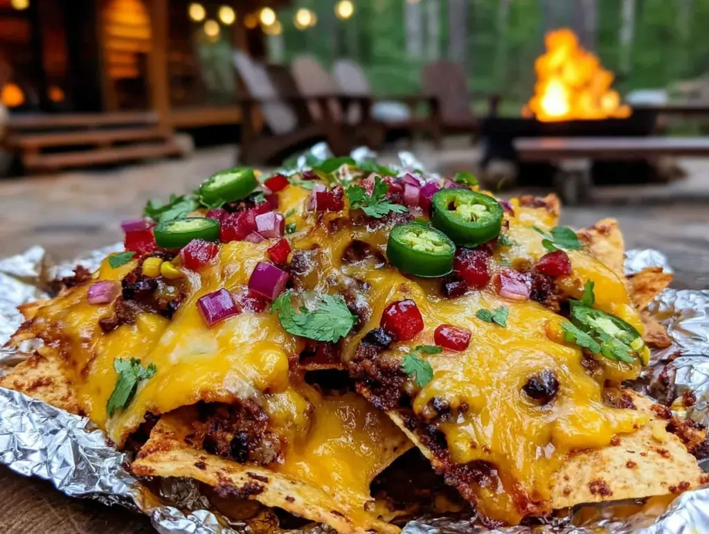 Keywords: campfire nachos, foil packet nachos, outdoor party snacks, easy camping recipes, cheesy nachos, smoky nachos, quick nachos